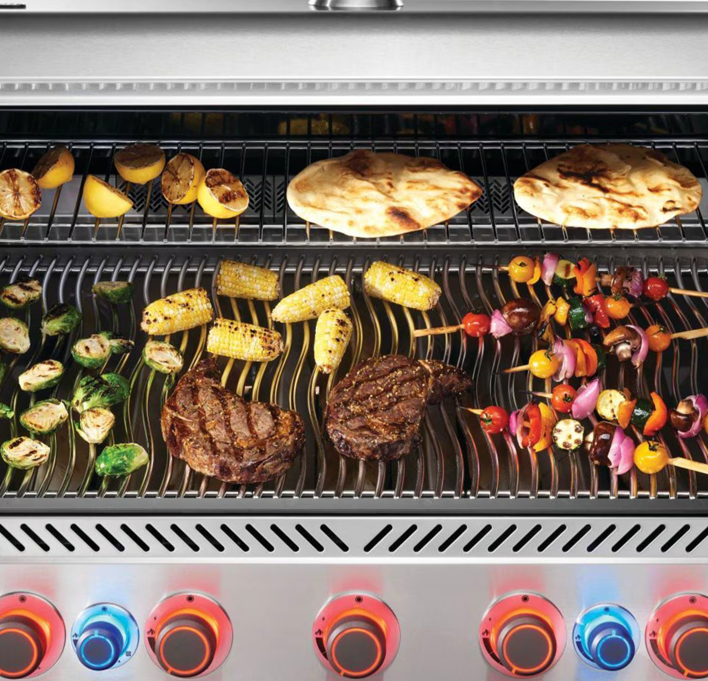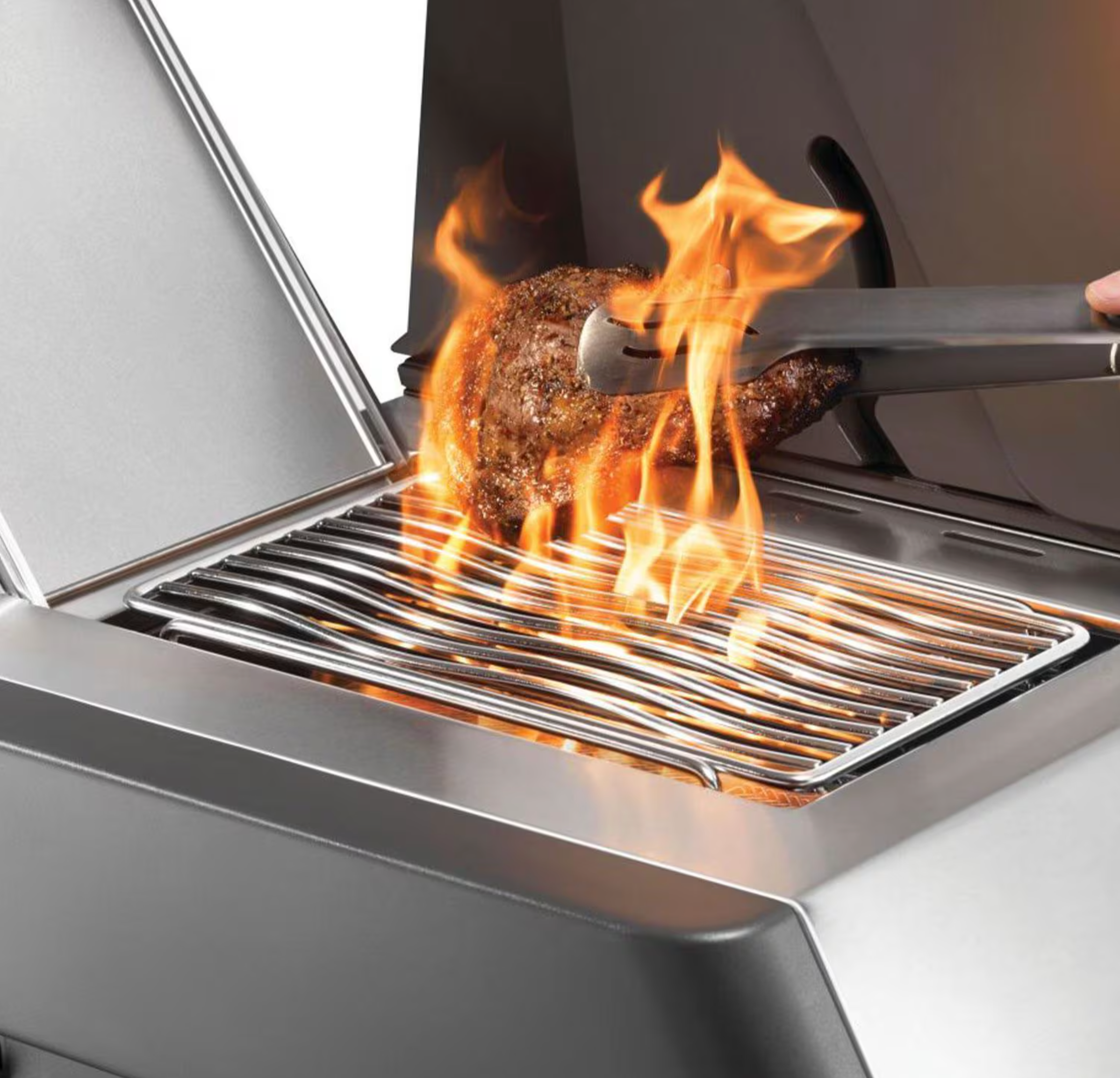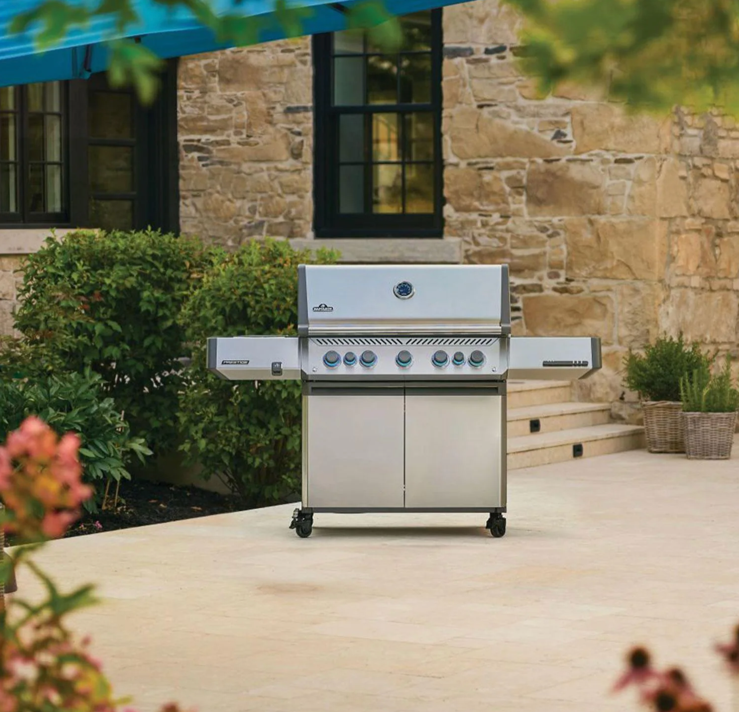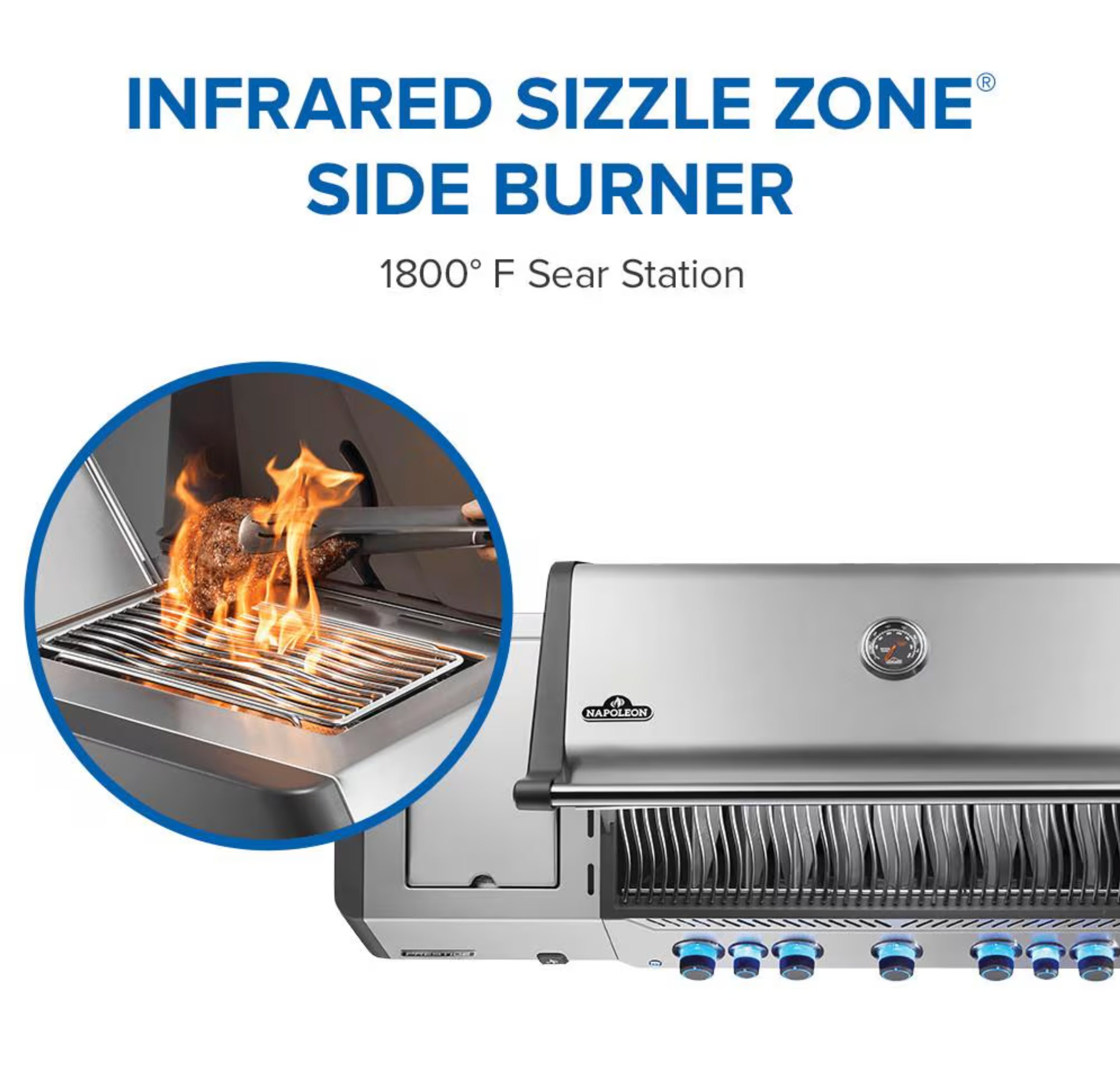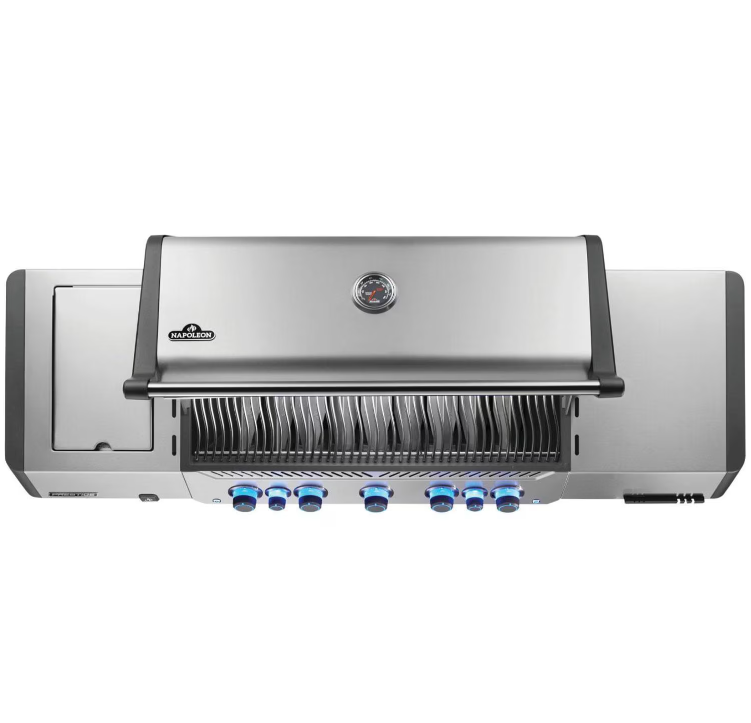 The stainless steel Prestige 665, Natural Gas Grill with Infrared Sde and Rear Burner is a dynamic evolution in grilling that connects you with your grilling experience more than ever before. A larger rotisserie burner and infrared sear station, side burner provide enhanced performance. LED Control Knobs illuminate for nighttime entertaining and feature SafetyGlow, glowing red for added safety when the gas is on. The stow-away warming rack keeps things tidy, and hidden tool hooks provide extra prep space. Enjoy the sleek and modern design and the unique cooking methods you already love with the compelling Prestige 665 Gas Grill.